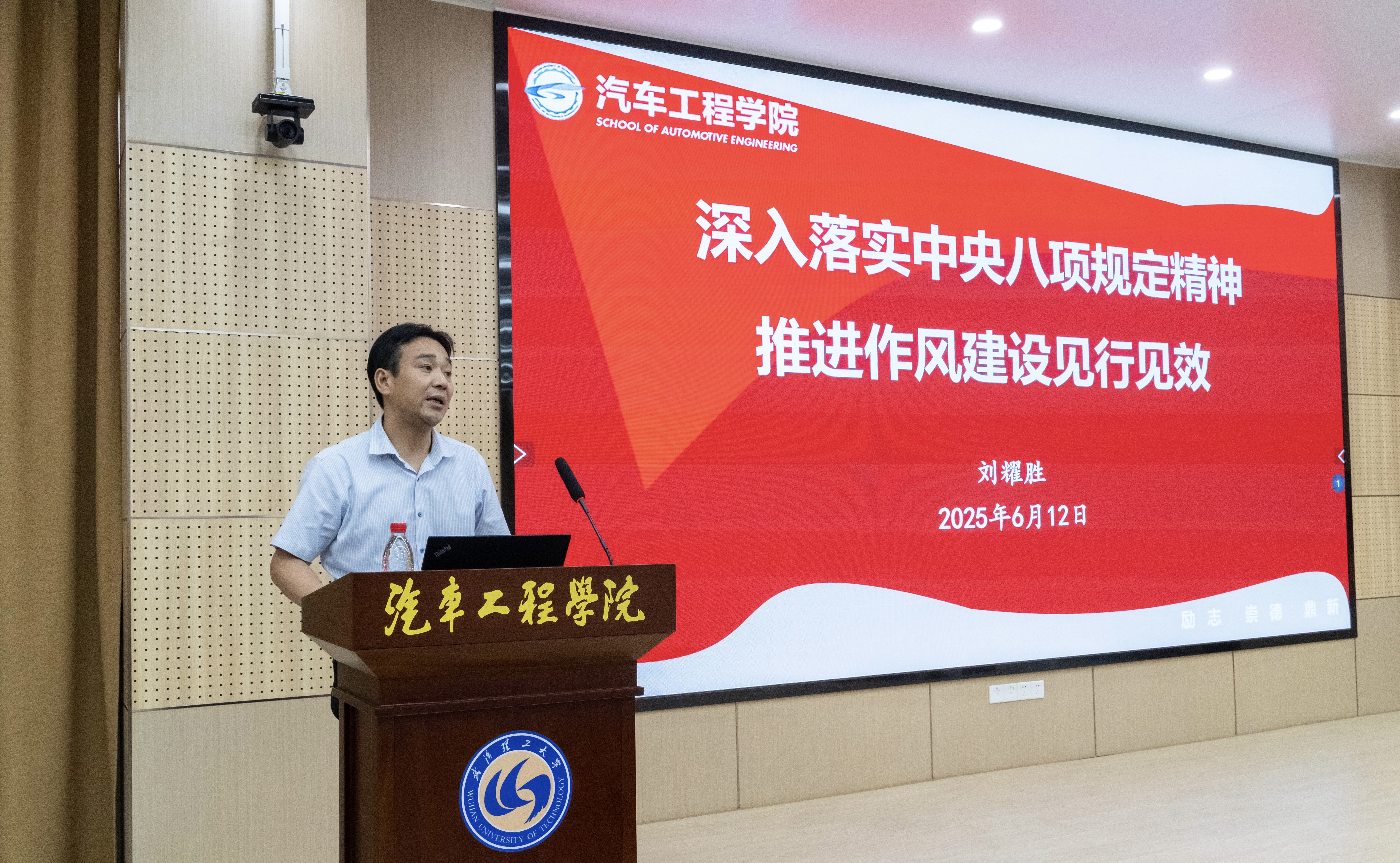 为扎实推进深入贯彻中央八项规定精神学习教育,持之以恒抓好作风建设,汽车工程学院于6月12日在保隆科技报告厅召开警示教育大会。学院领导班子成员、全体教职工参会。会议由学院党委书记刘耀胜主持。