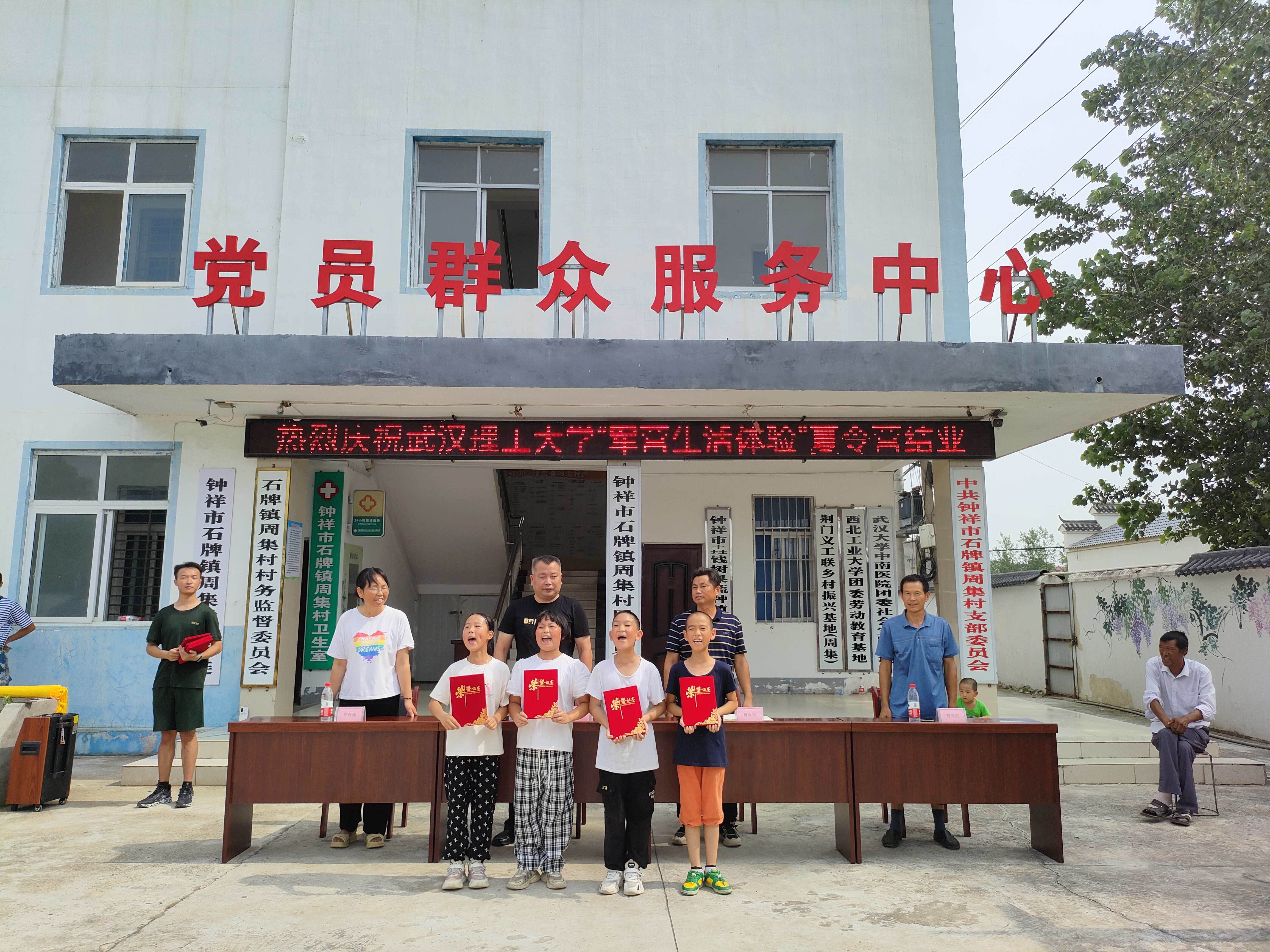 当十一二岁的少年遇上身着迷彩的退伍大学生,一颗小小的种子便从此在他们心中埋下。7月13日上午,武汉理工大学退役军人“向太阳”志愿服务队2023年“军营生活体验”暑期社会实践活动闭营仪式于周集村委会广场举行。钟祥市石牌镇武装部部长李必洲,周集村党支部书记、村委会主任贾永兴,村支委、副主任许春燕,村副主任贺学虎出席仪式。仪式上进行了队列展示和军歌展示,让领导和家长们检验孩子们这段时间的训练成果。