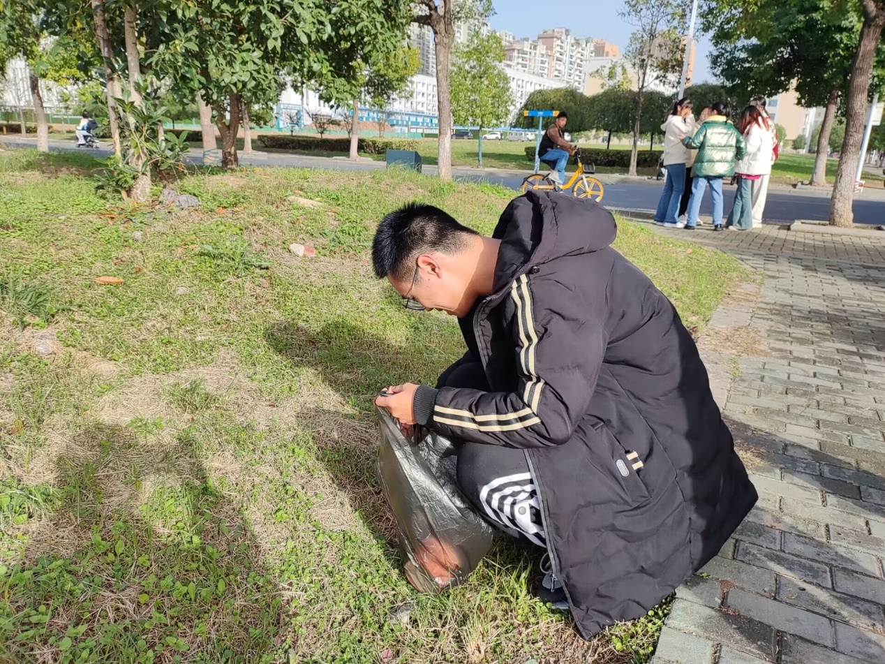 本次活动主要包括清理南湖图书馆前花海中的垃圾和分发守护花海活动的宣传海报。在清理垃圾的过程中,同学们在寒冷的天气下认真清理花海的每一处,不放过一片垃圾。张霈森同学提醒同学们小心地滑,以及天气寒冷同学们注意保暖。同学们纷纷对张霈森同学的提醒表示感谢。