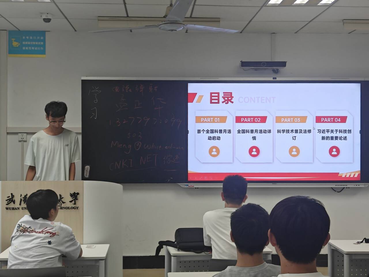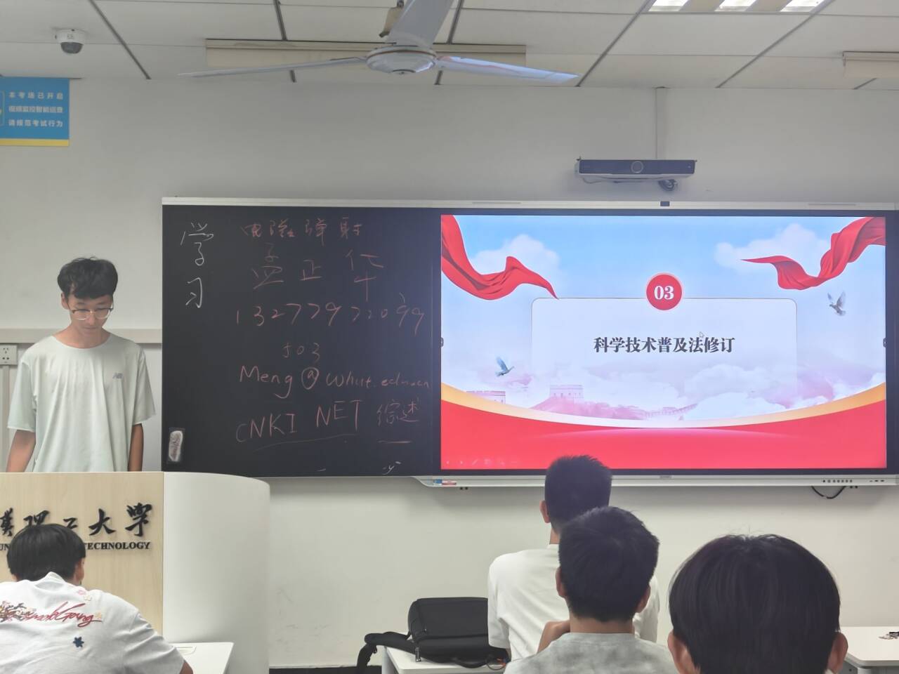 活动伊始,团支书周志仪以“首个全国科普月活动启动”为切入点,通过播放科技发展纪录片片段,带领团员们了解我国科学技术普及法修订的详情。让大家深刻感受到“科技改变生活”并非抽象概念,而是渗透在日常的点点滴滴 。